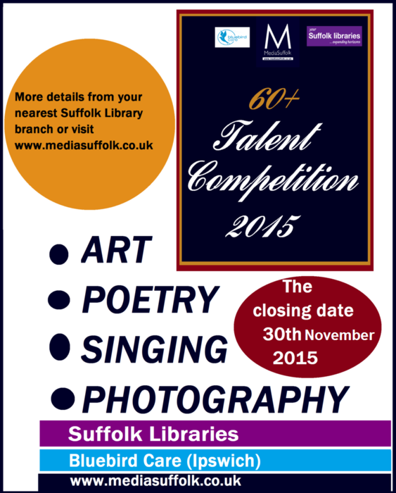 This competition is open to everyone aged 60+ who lives in Suffolk and is organised by www.mediasuffolk.co.uk, sponsored by Bluebird Care and supported by Suffolk Libraries.